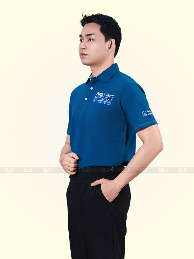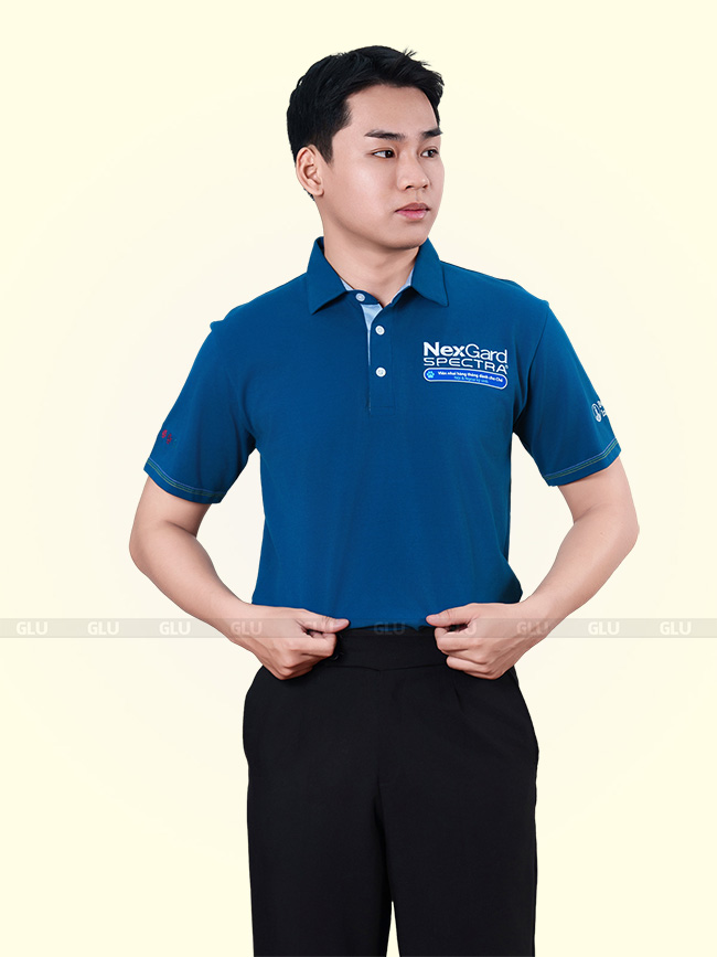 Logo “NexGard” được in bằng công nghệ pet chuyển nhiệt ở ngực trái, mang đến hình ảnh sắc nét, bền bỉ và thể hiện rõ nét thương hiệu của doanh nghiệp. Phần bo cổ dệt kiểu cao cấp với đường viền tinh tế không chỉ tăng thêm vẻ thẩm mỹ mà còn giữ cho cổ áo luôn đứng dáng. Nếu bạn đang tìm kiếm xưởng may đồng phục giá rẻ tại Đồng Hà mà vẫn ưu tiên chất lượng và sự chuyên nghiệp, mẫu áo polo xanh biển NexGard SPECTRA là một lựa chọn đáng cân nhắc. Tối ưu ngân sách đồng phục, khẳng định bản sắc doanh nghiệp, liên hệ ngay để nhận tư vấn và báo giá tốt nhất tại Quảng Trị!